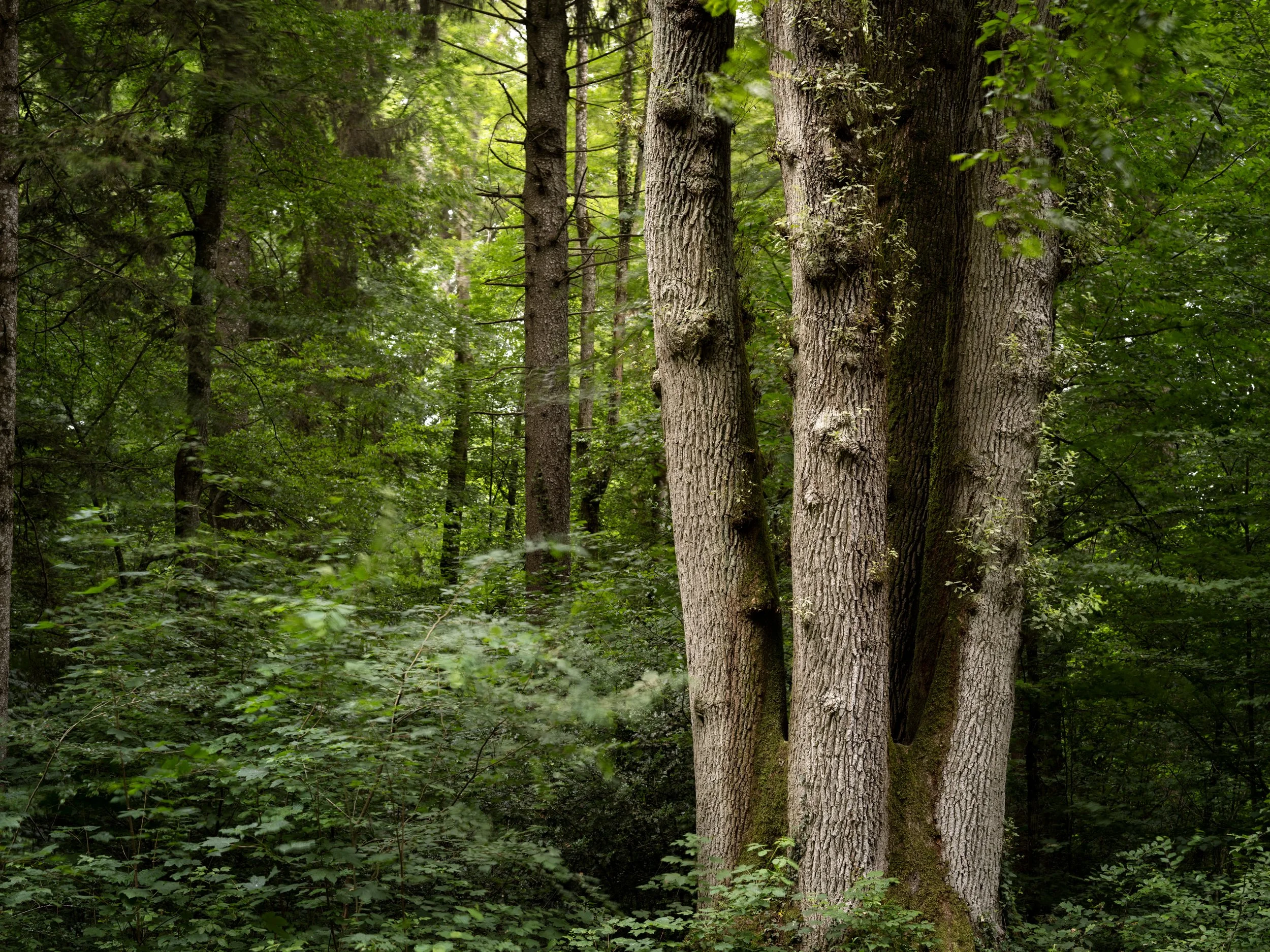 Die Vielfalt der Wälder ist groß. In der Schweiz reicht sie von Mischwäldern mit Buchen, Tannen, Eschen, Erlen und meiner persönlichen »Königin«, der Eiche, bis zu Bergwäldern mit Fichten, Arven, Lärchen. Es sind aber nicht die einzelnen Baumarten, die mich begeistern, sondern die Eigenschaften des jeweiligen Waldes. Die Mischwälder im Mittelland sind oft so dicht zugewachsen, dass man den Horizont nur selten zu Gesicht bekommt und bei Schlechtwetter auch tagsüber kaum etwas sieht. Totholz und Büsche versperren Wege und machen sie fast unpassierbar. Manchmal ist es beruhigend zu wissen, dass hierzulande keine wilden Raubkatzen leben, derart tropisch mutet die Umgebung an. In den Bergen wiederum entsteht ein besonderes Zusammenspiel zwischen Wald, Fels und Berg. An schier unmöglichen Stellen wachsen Bäume aus dem Gestein. Der Blick in bewaldete, felsige Täler erinnert bisweilen an die weiten Landschaften Nordamerikas.