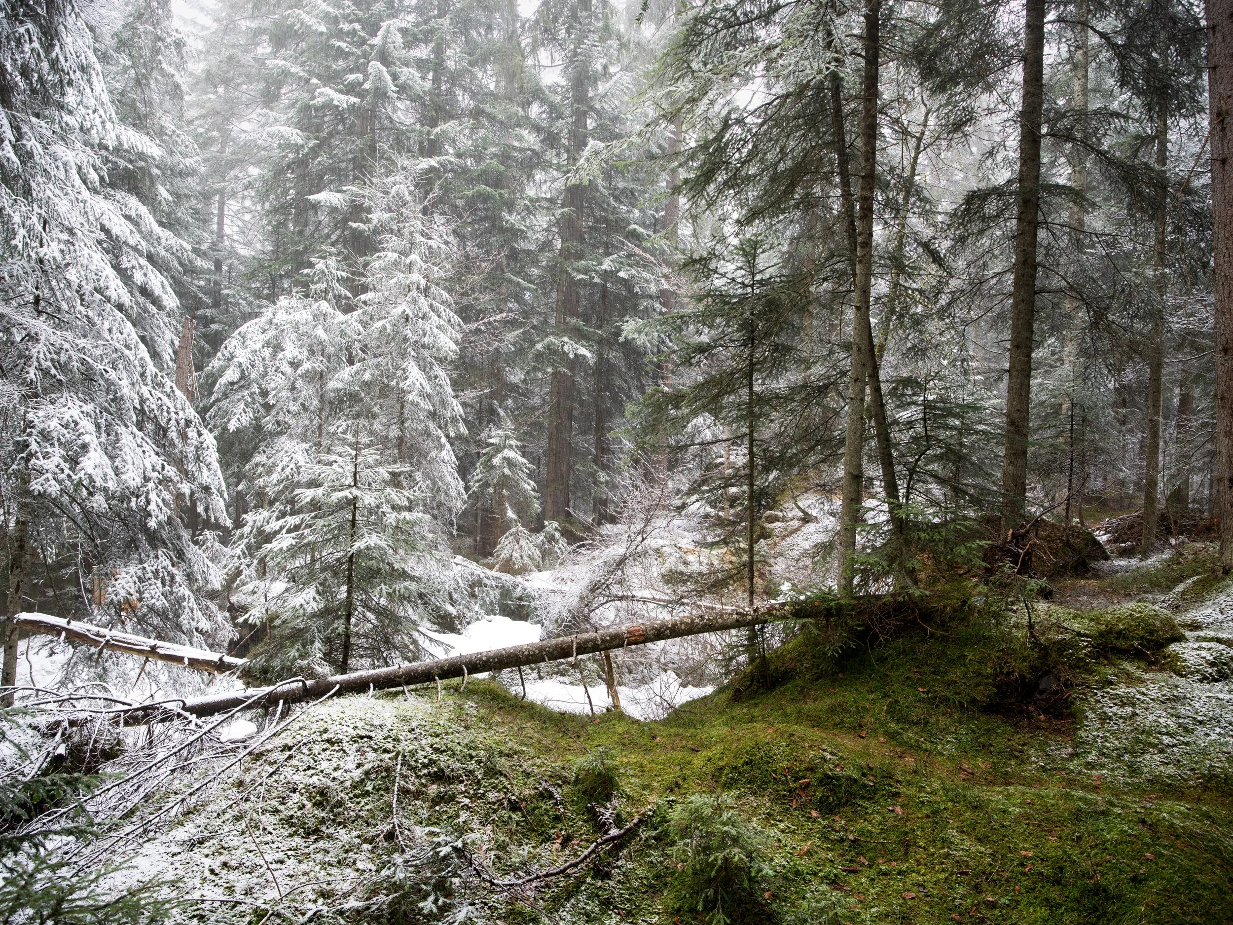 Oft werde ich gefragt, wo man die schönsten Wälder findet. Zweifellos ist das Hintere Lauterbrunnental sehr beeindruckend. Ein wuchtiges Tal mit Wasserfällen, Wäldern und Bergen – eine Szenerie wie geschaffen für einen großen Spielfilm. Großartig ist auch der Wald in Flims. Dieser hat sich vor etwa zehntausend Jahren nach einem Bergsturz über dem Geröll gebildet. Manchmal sind die schönsten Wälder auch mit einem eindrücklichen Erlebnis verbunden. Wie einmal im Frühjahr, auf dem Weg von Netstal zum Klöntalersee, als die Wälder schon kräftig grün waren: Dichte Wolken hingen über dem Tal und gaben hin und wieder die Sicht frei auf die noch verschneiten Berge in der Ferne.